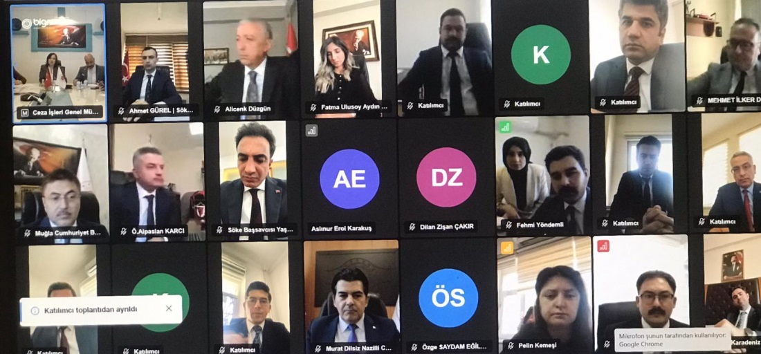 Aydın, Muğla Adliyeleri ve mülhakat adliyeleriyle birlikte Cumhuriyet başsavcıları, uzlaştırmadan sorumlu Cumhuriyet başsavcıvekilleri ve Cumhuriyet savcıları ile “Uzlaştırma Kurumu”na ilişkin çevrimiçi değerlendirme toplantısı gerçekleştirilmiştir. Toplantıda uzlaştırma uygulamalarının takibi, uzlaştırmacıların denetimi, kurumdan beklenen faydaların artırılmasında yapılması gereken hususlar ve uzlaştırma görüşme odalarının önemine değinilmiştir.