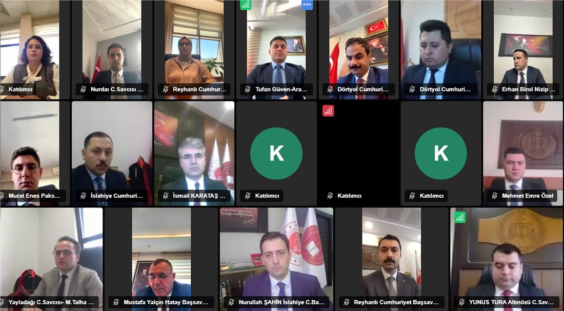Gaziantep, Hatay Adliyeleri ve mülhakat adliyeleriyle birlikte Cumhuriyet başsavcıları, uzlaştırmadan sorumlu Cumhuriyet başsavcıvekilleri ve Cumhuriyet savcıları ile “Uzlaştırma Kurumu”na ilişkin çevrimiçi değerlendirme toplantısı gerçekleştirilmiştir. Toplantıda uzlaştırma uygulamalarının takibi, uzlaştırmacıların denetimi, kurumdan beklenen faydaların artırılmasında yapılması gereken hususlar ve uzlaştırma görüşme odalarının önemine değinilmiştir.